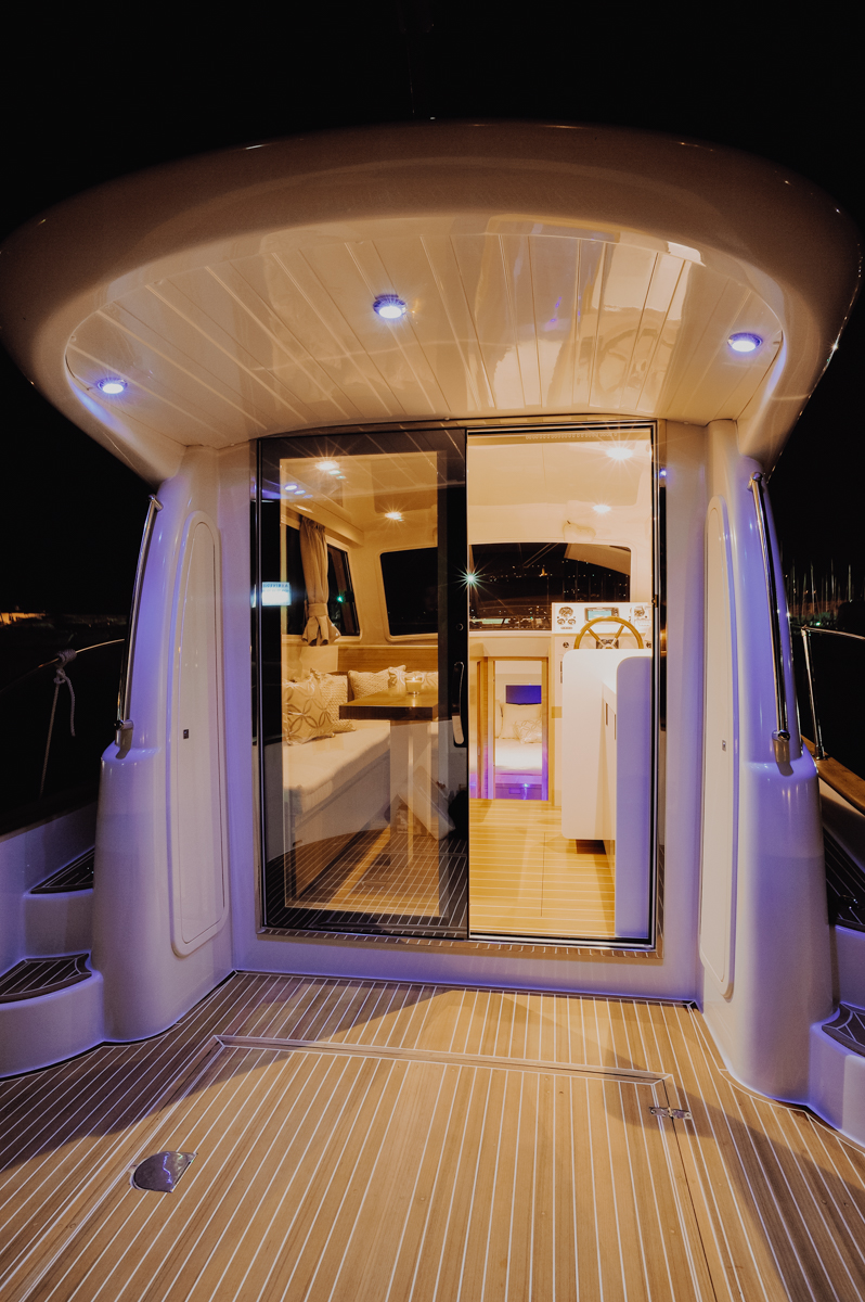A boat that is suitable for both day trips and cruises on the Mediterranean. A bright dinette, two elegantly furnished cabins, a real stone bathroom (optional) in just 9 meters.