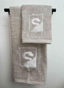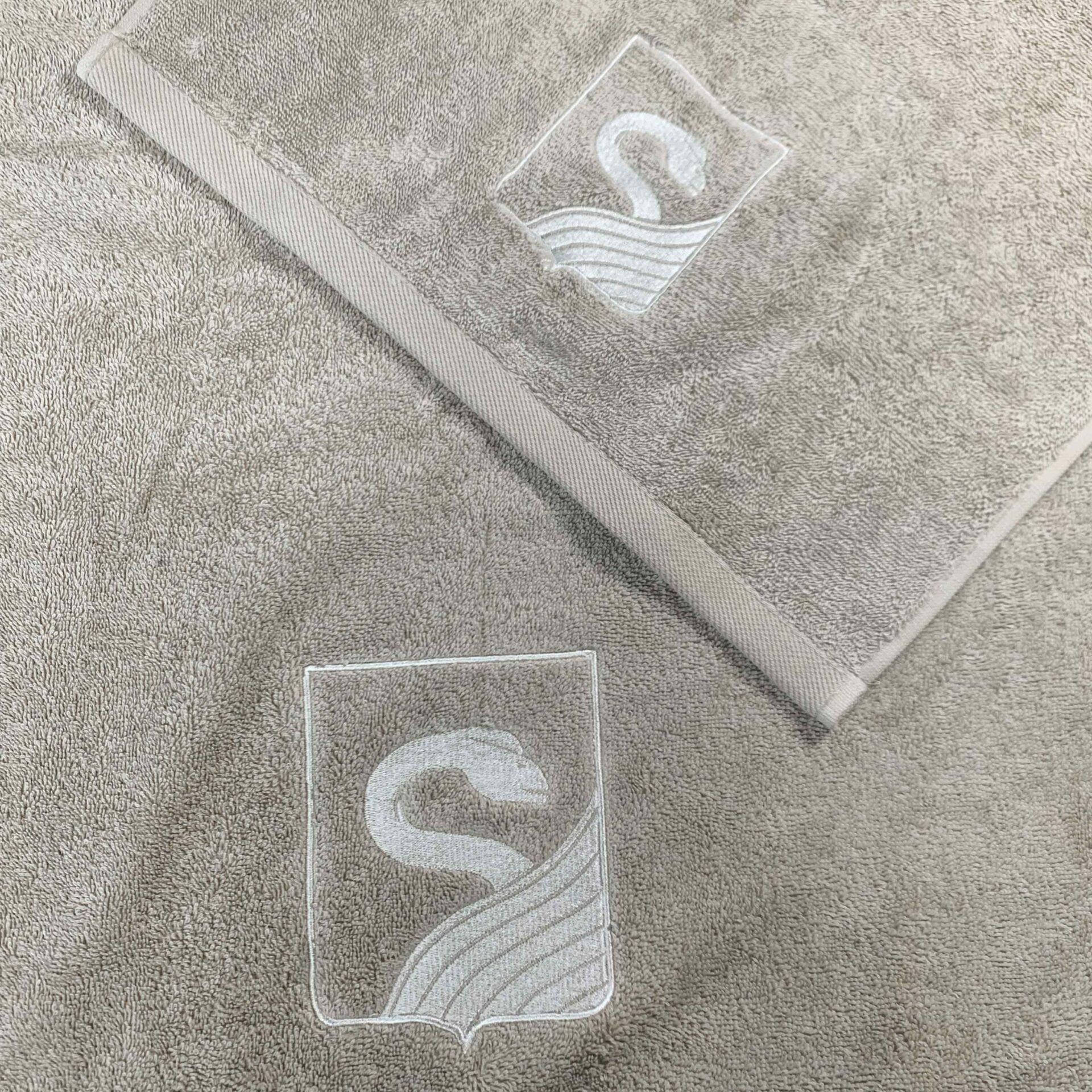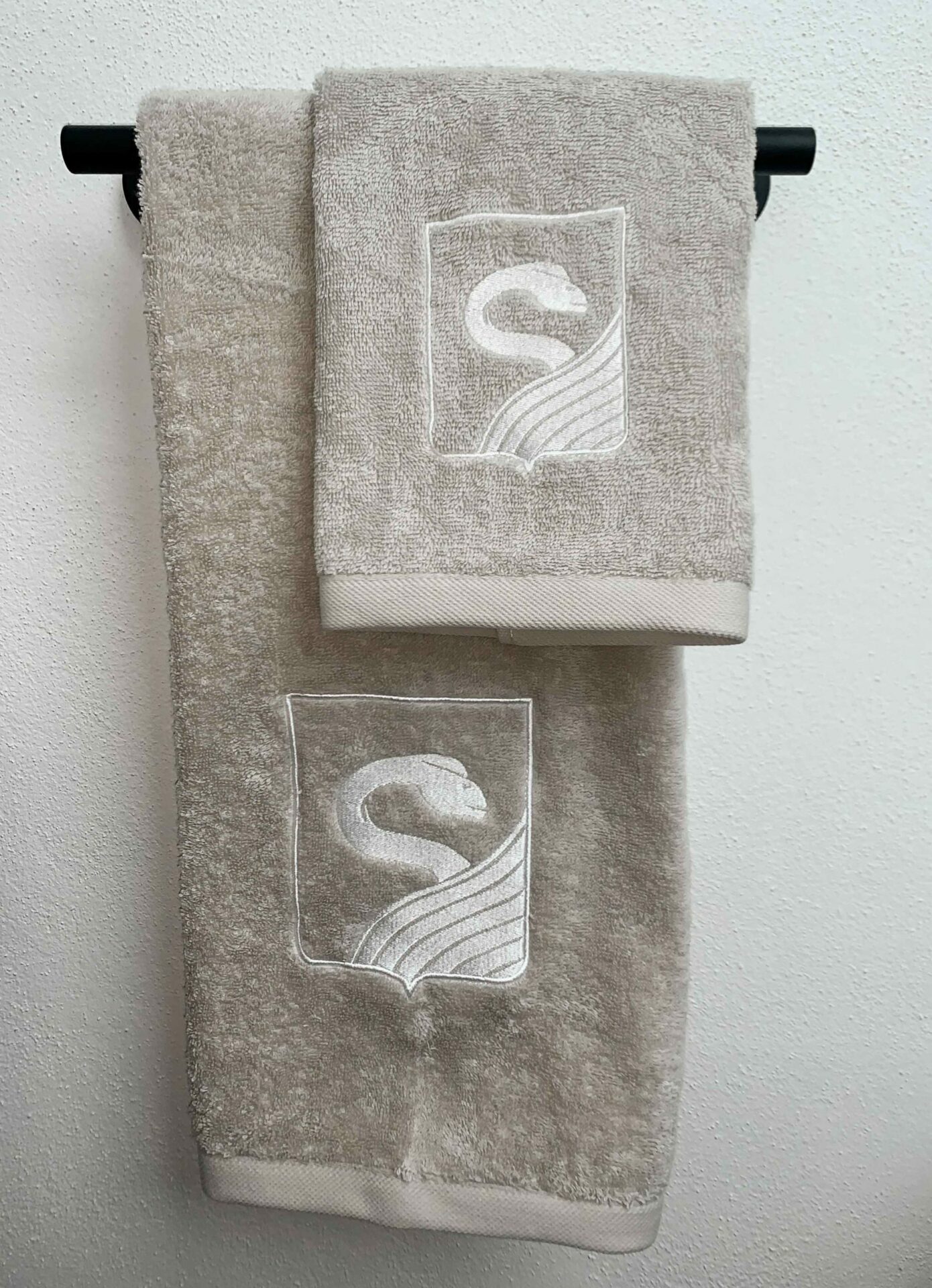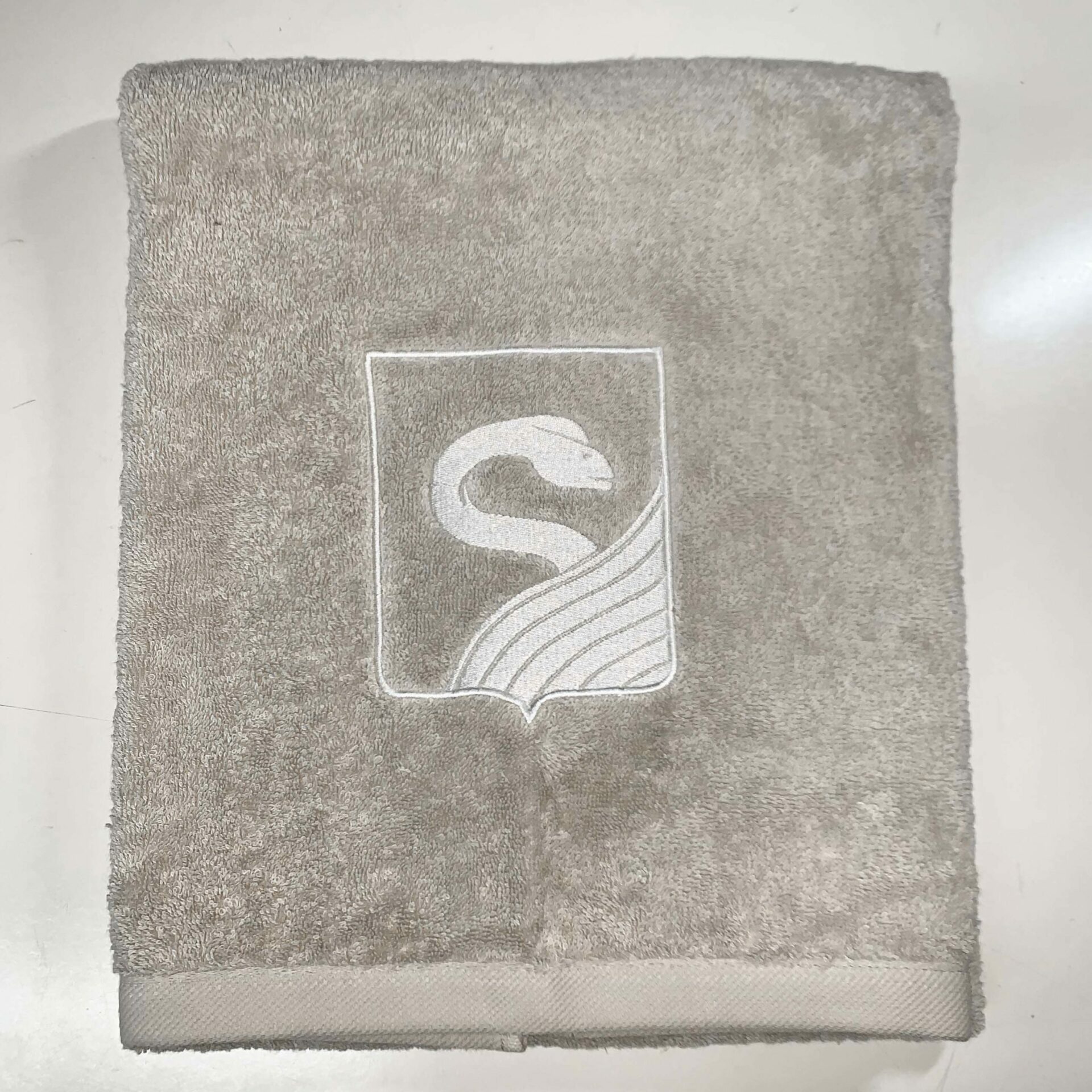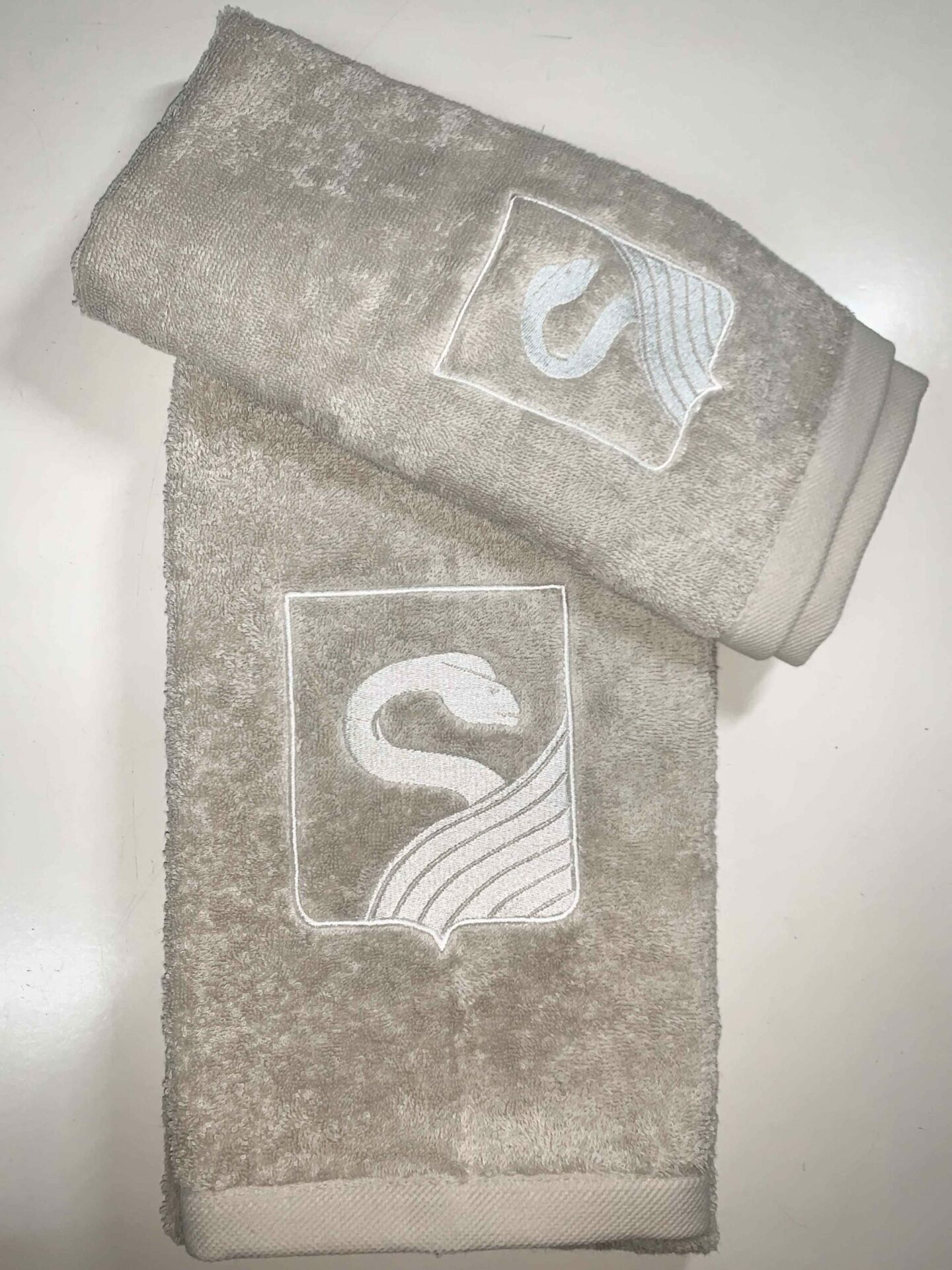 Asciugamano in pregiato cotone con logo ricamato tono su tono.